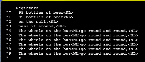 " 를 이용하여 레지스터에 저장되어있는 것들 중 선택해서 paste 할 수 있다. 예를 들어 2번째 on the wall을 붙여 넣고 싶다면 "2p 라고 입력해주면 된다.