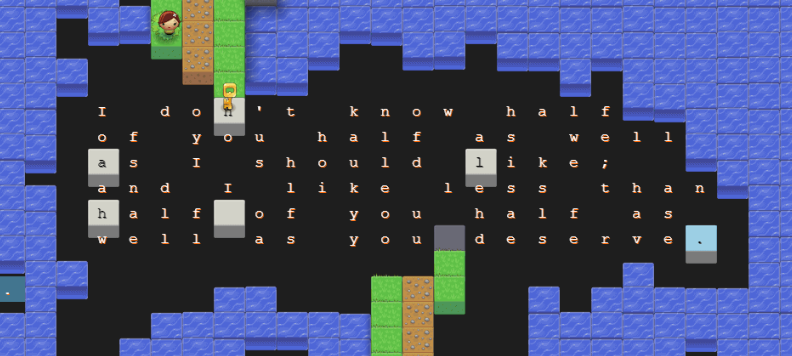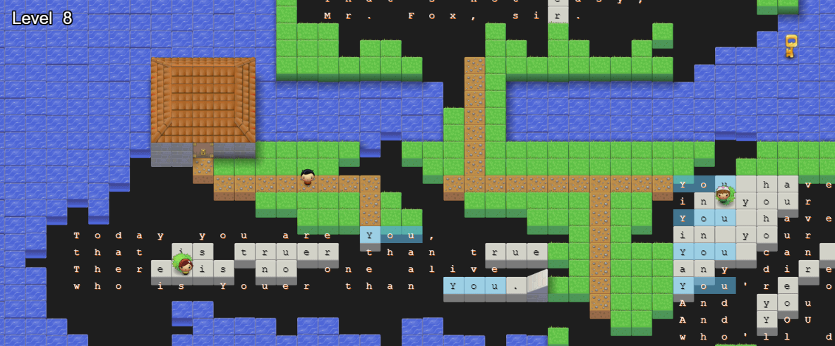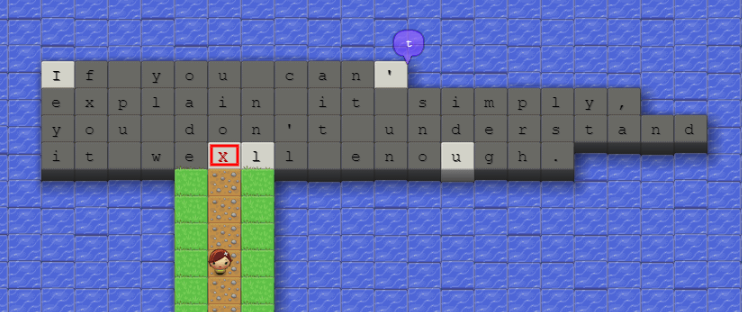 p 를 이용한 첫 번째 퍼즐을 풀고 아래의 퍼즐을 풀어주면 " 키를 얻을 수 있다. 글자 하나가 아닌 여러 줄을 지웠으므로 굳이 처음으로 가지 않아도 된다.
